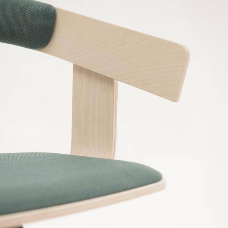 このチェアは、木製や張り地仕上げのバージョンがあり、空間のデザインや用途に合わせてカスタマイズが可能です。フレームはスチール製で、さまざまなカラーオプションが用意されており、モダンなオフィスや会議室、カフェなど、幅広いシーンに調和します。