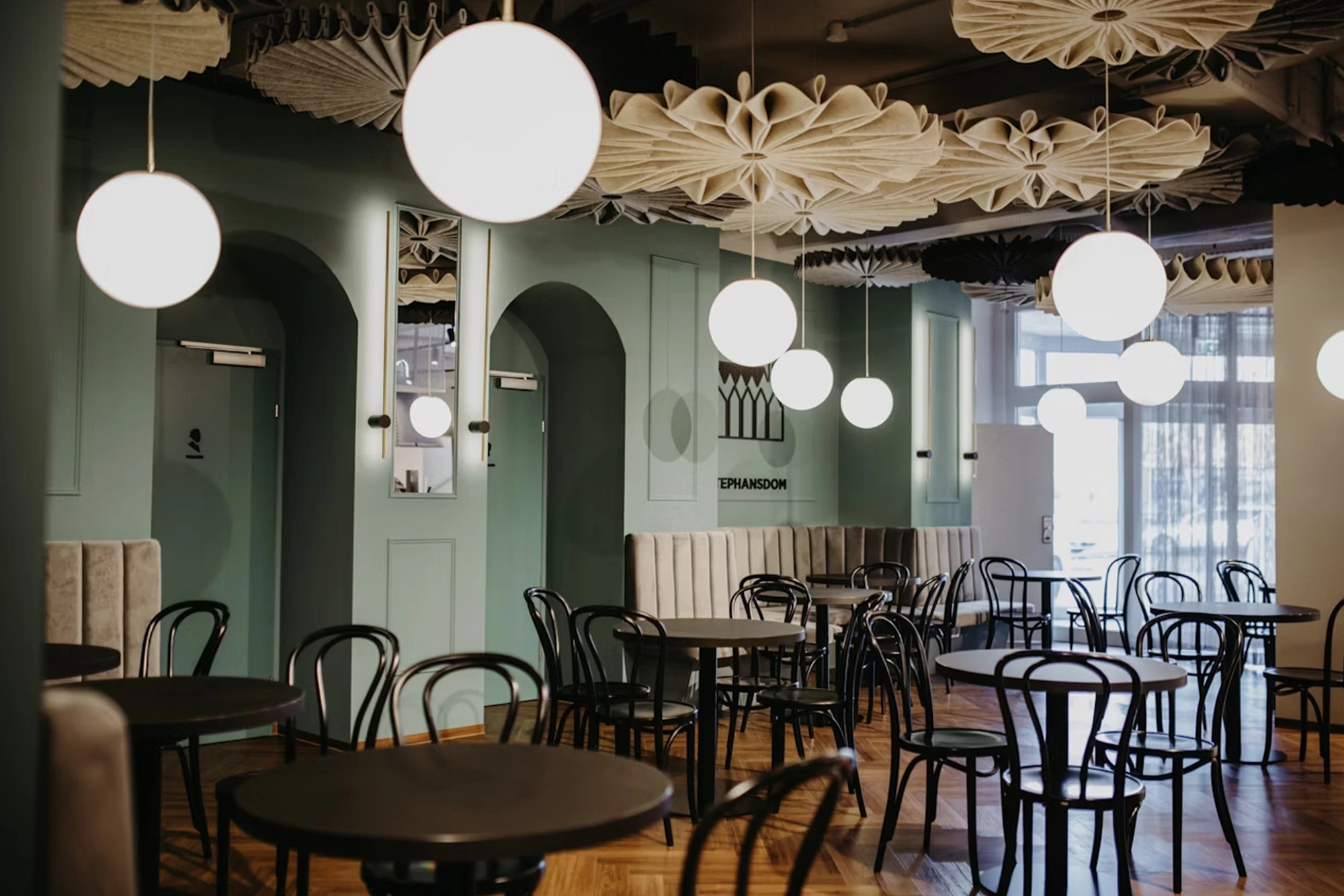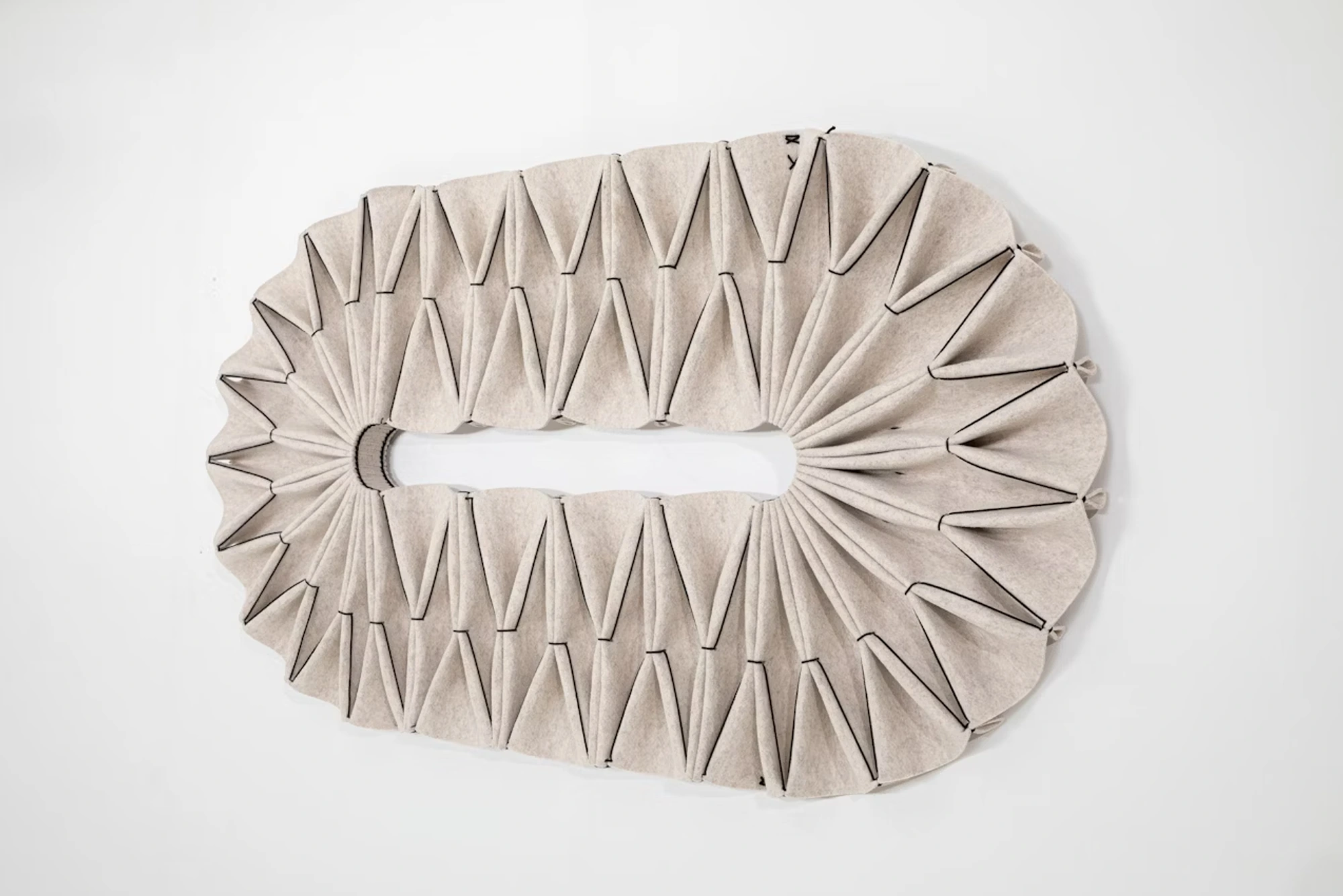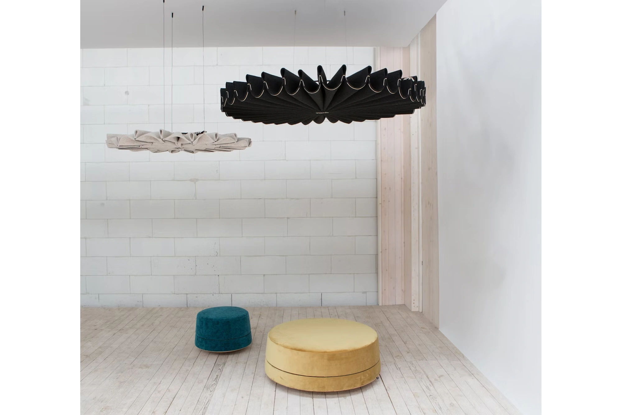 大胆でありながら軽量なプリーツは、天井から吊り下げたり、壁に取り付けたりすることができます。