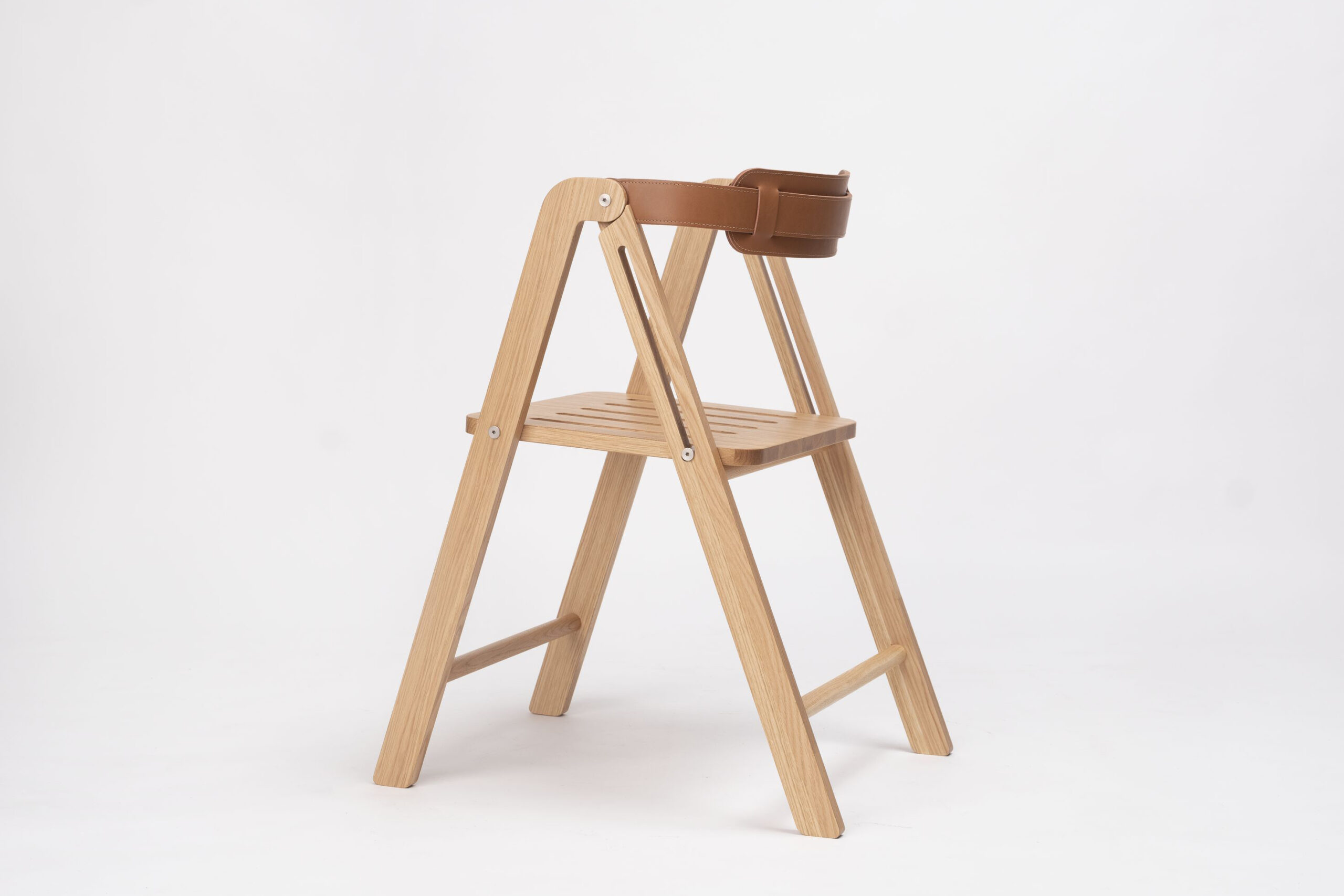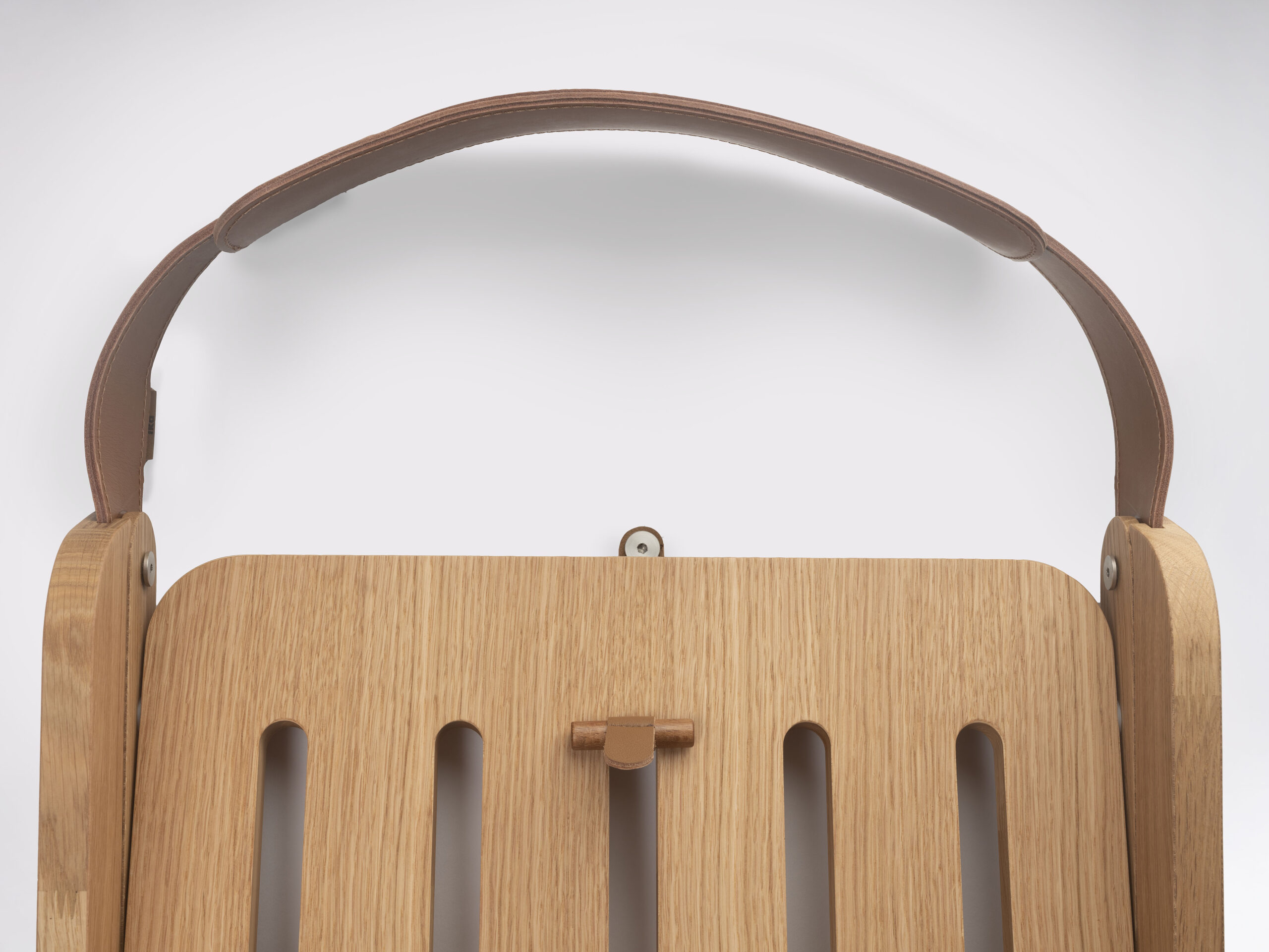 IKAは、ダイナミックで持ち運び可能な家具です。オーク材の座面とフレームに、丈夫なレザーストラップを組み合わせています。このストラップは背もたれとしての機能だけでなく、肩に掛けて簡単に持ち運ぶことができるという二重の役割を果たします。最小限のスペースで最大限のデザイン性を提供するチェアです。コンパクトで機能的なデザインのため、どこへでも持ち運びやすく、あらゆる空間に馴染みます。自宅や外出先での急な集まりに最適なソリューションとなる一脚です。