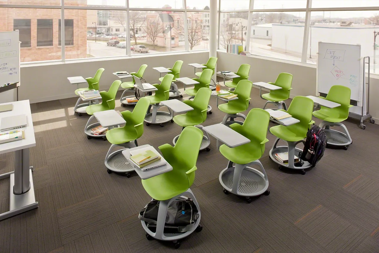node は可動式で柔軟性の高い教育用チェア。一つの指導モードから次のモードへ