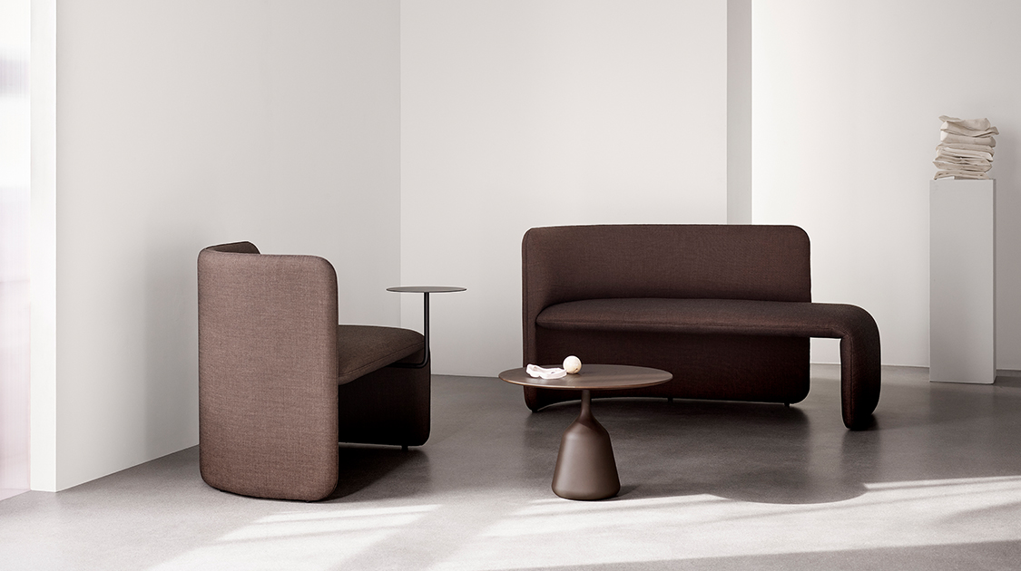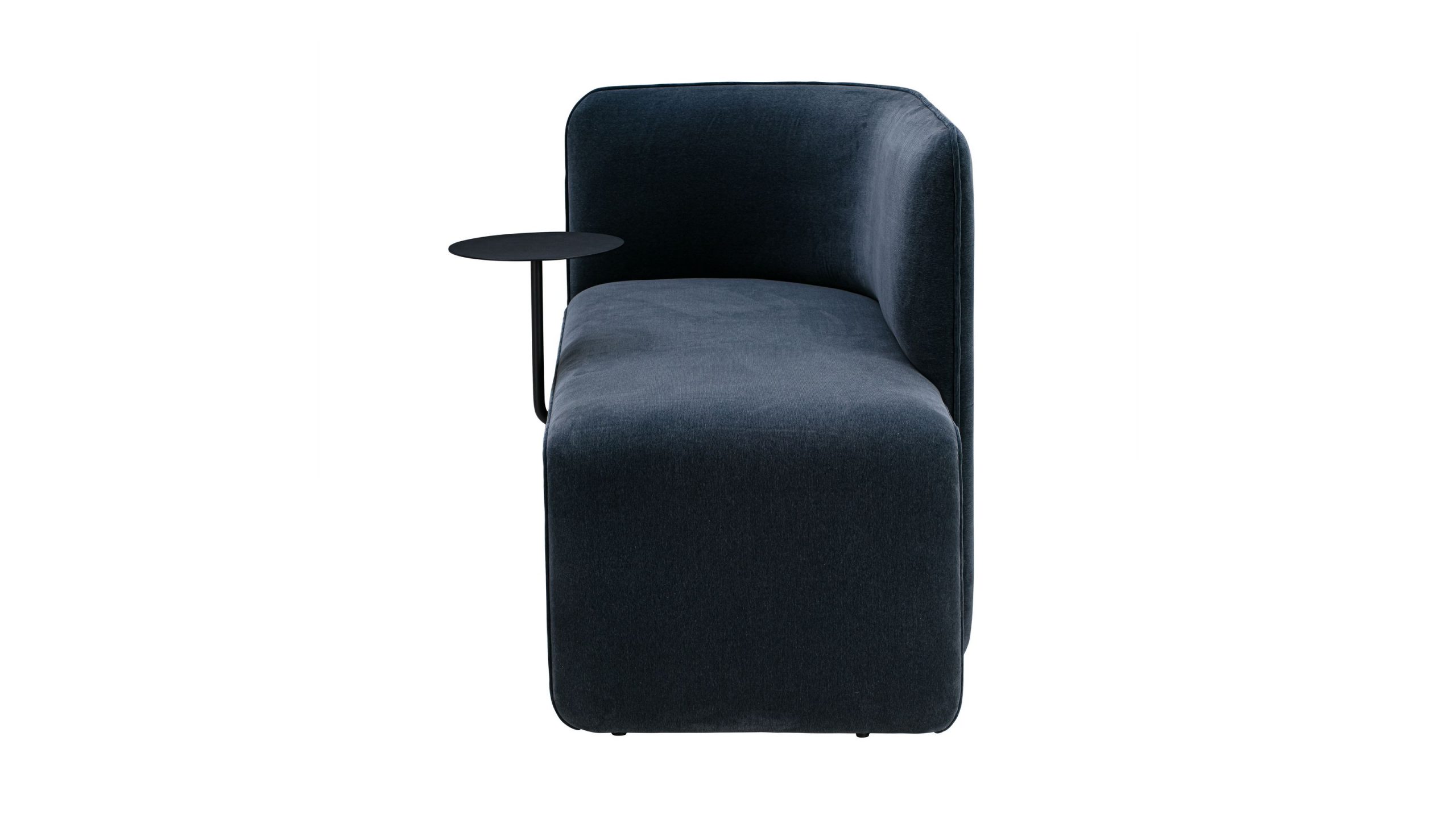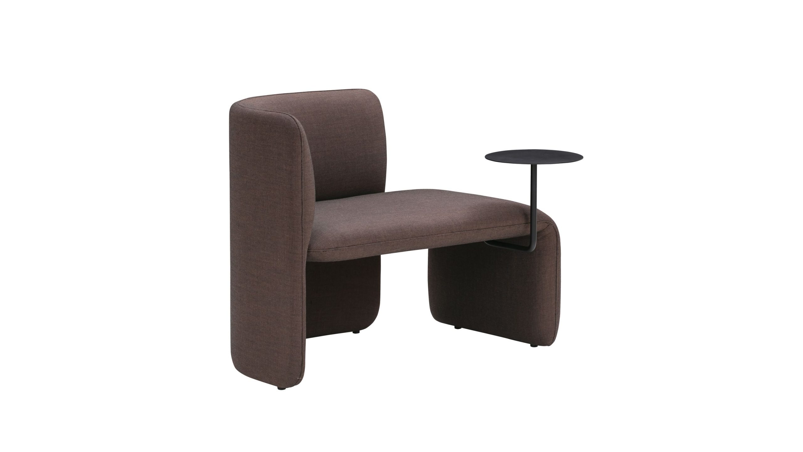 シンプルかつモダンなフォルムと布張りの柔らかな質感が織りなす個性的な造形美と機能美が融合。カーブ状の背もたれとユニークなラインを描くシートとサイドテーブルの組み合わせで座り方も用途も自由自在です。