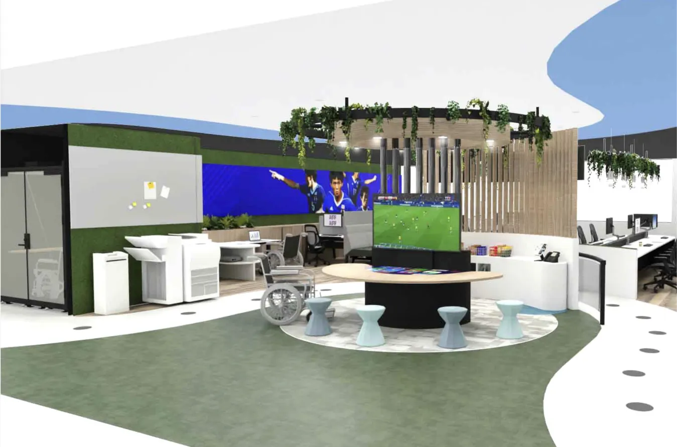 オンラインゲーム事業# エントランス# オフィス空間# カフェ機能# コラボレーション# 集中スペース -