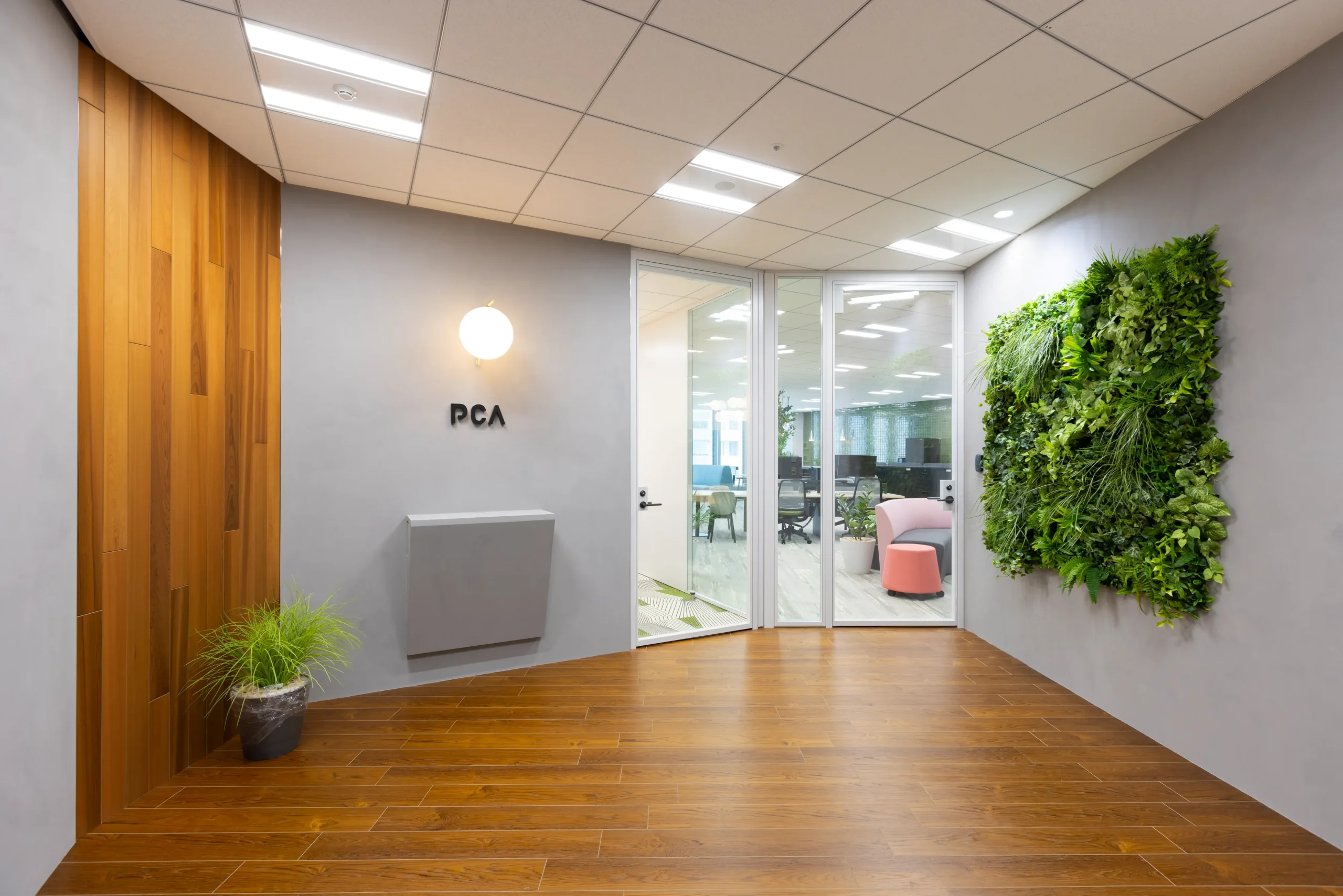 バックオフィスの効率化を担う基幹業務系ソフトウェアの企画開発・販売を行うピー・シー・エー株式会社様。東京都の本社ビルの会議室リニューアルに始まり、翌年には大阪支店のオフィス移転のプロジェクトの依頼をいただきました。移転プロジェクトでは、若手社員が中心となり、新オフィスのコンセプトを決めるワークショップなど専用プログラムを実施。社員様とWSIがワンチームでオフィスを完成させました。こだわりを詰め込んだ「自分たちらしい」オフィスが出来上がるまでの経緯を、移転プロジェクトリーダーの赤沼さんと、多賀谷さんのお二人にお話を伺いました。