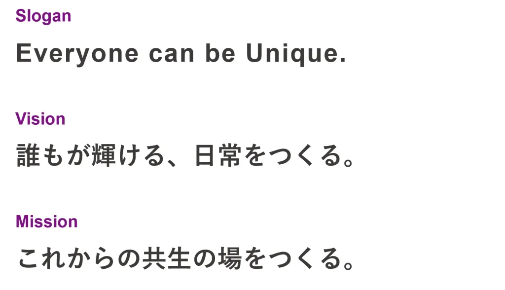 目指すべく、新たなブランドイメージを構築いたします。新しいCI/VIは、弊社の「共生の場をつくる」というミッションを基に、新しい目標に向けて一丸となって取り組む姿勢を象徴するものと